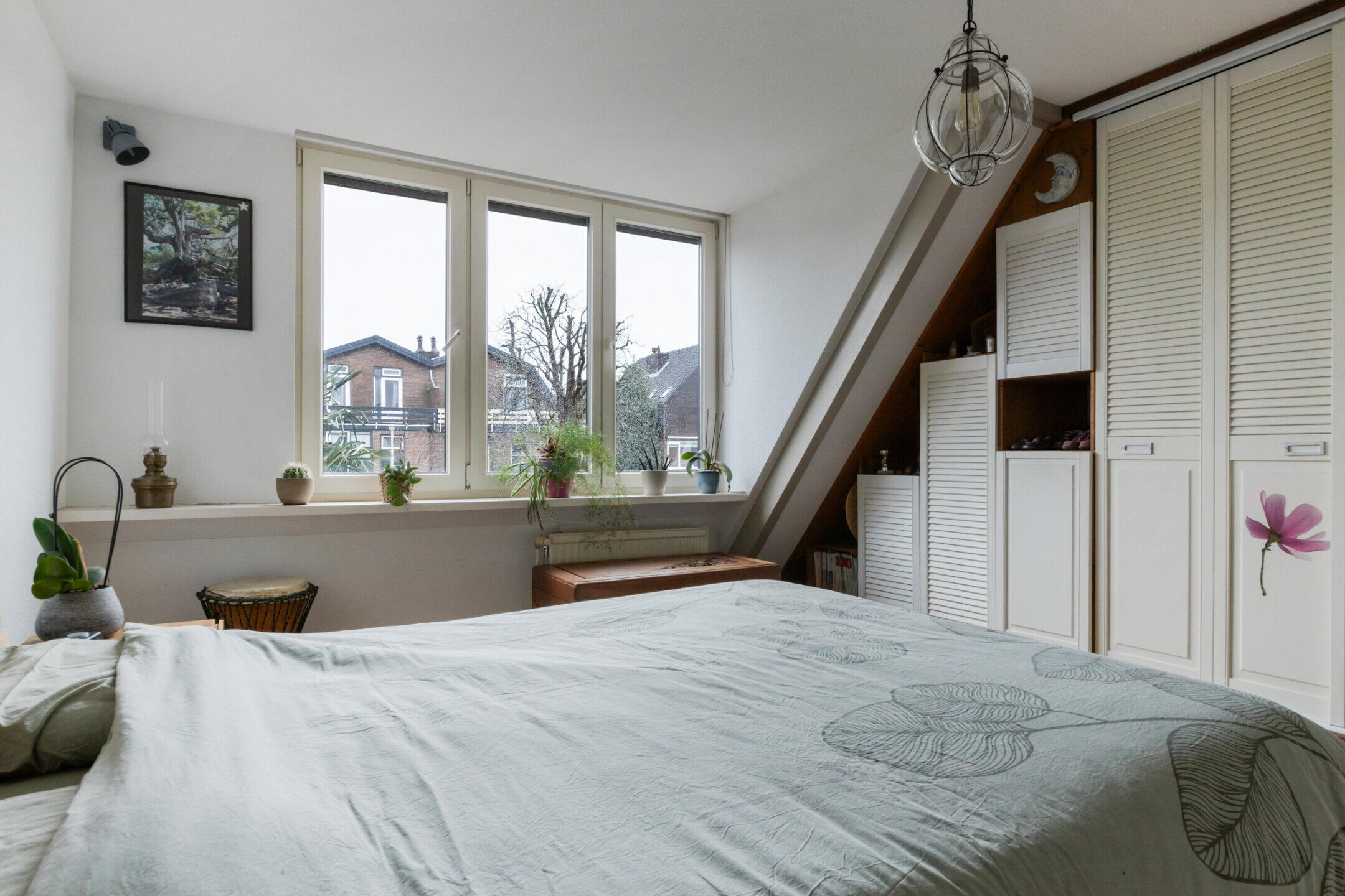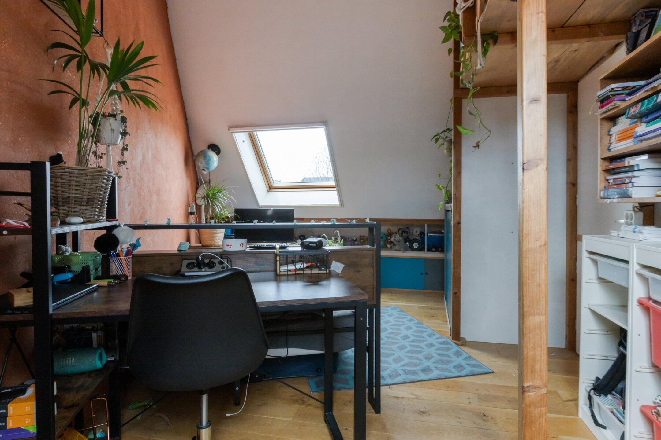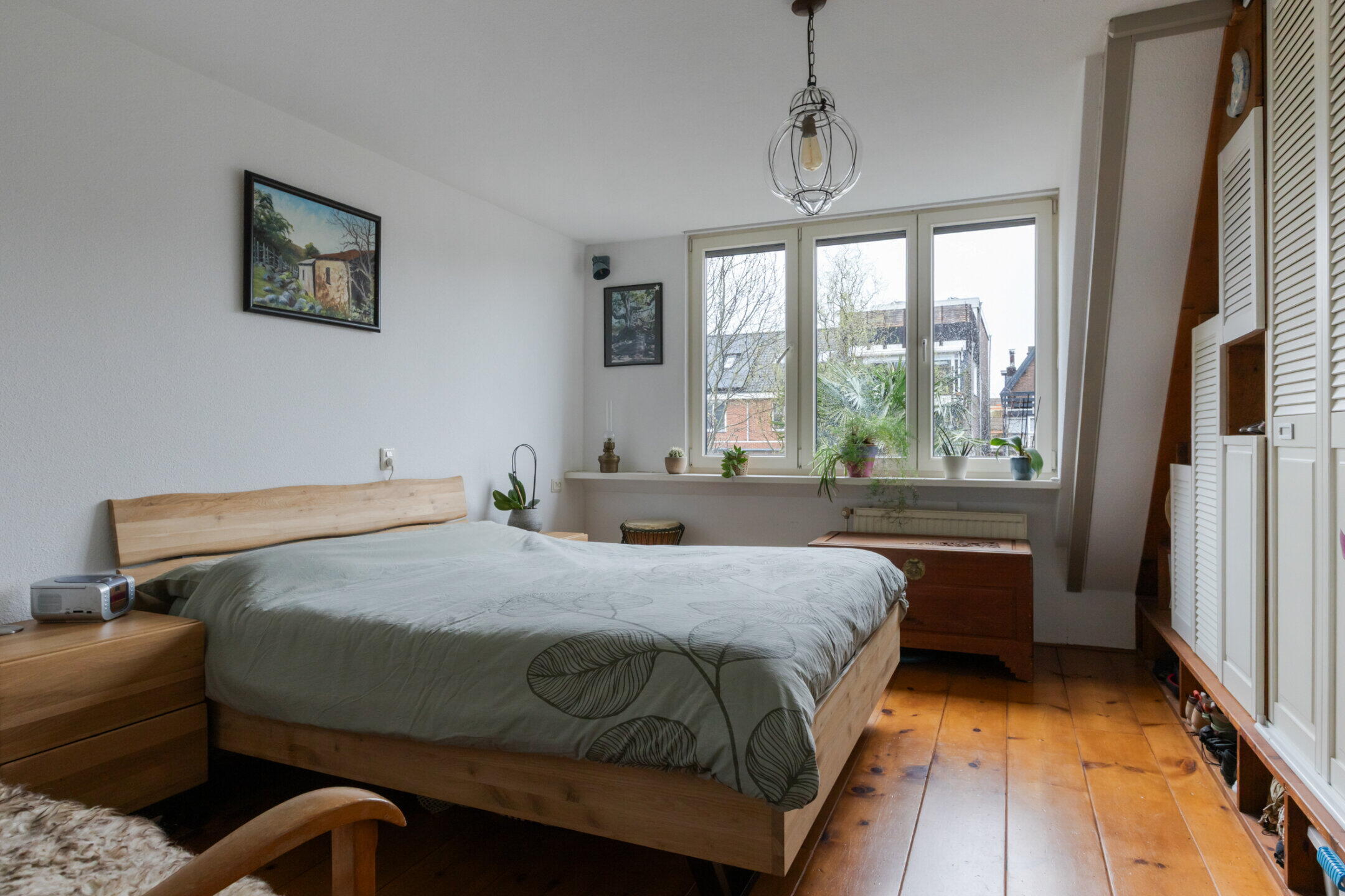 De verdieping beschikt over één grote slaapkamer met een nokhoogte van 3,11 m, voorzien van dakramen aan zowel de voor- als achterzijde. Aan de voorzijde is extra bergruimte aanwezig. De ruimte kan desgewenst worden opgedeeld in twee slaapkamers, eventueel met een extra dakkapel. Ook deze verdieping is afgewerkt met een massieve eikenhouten vloer, wat bijdraagt aan de warme en stijlvolle uitstraling van de woning.