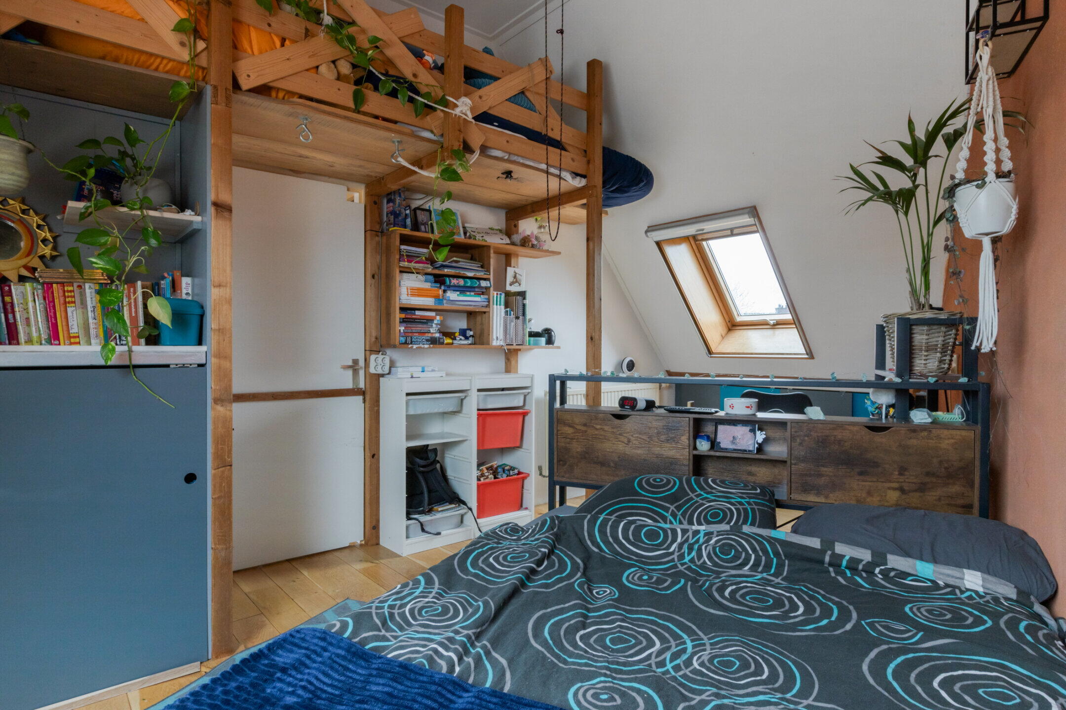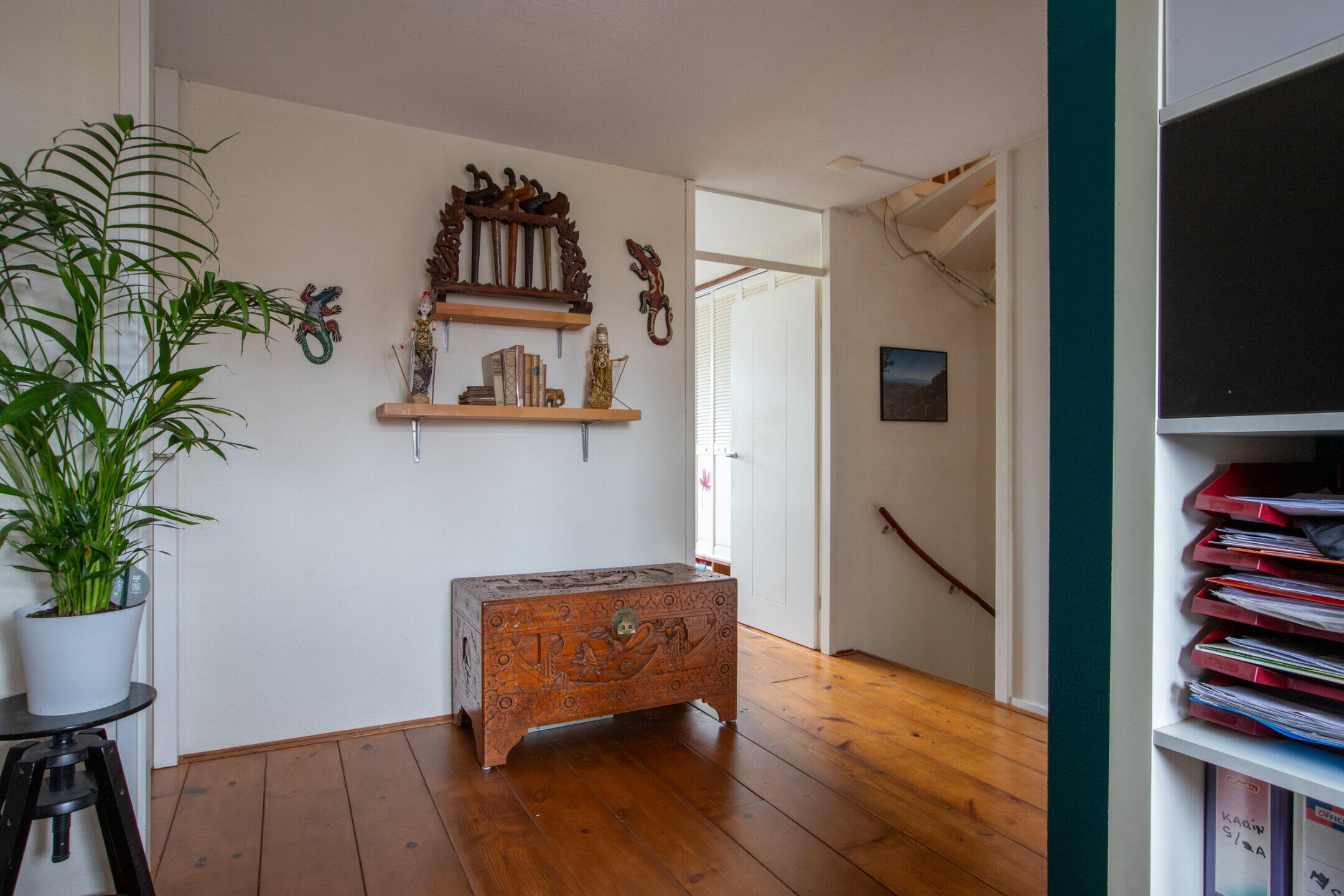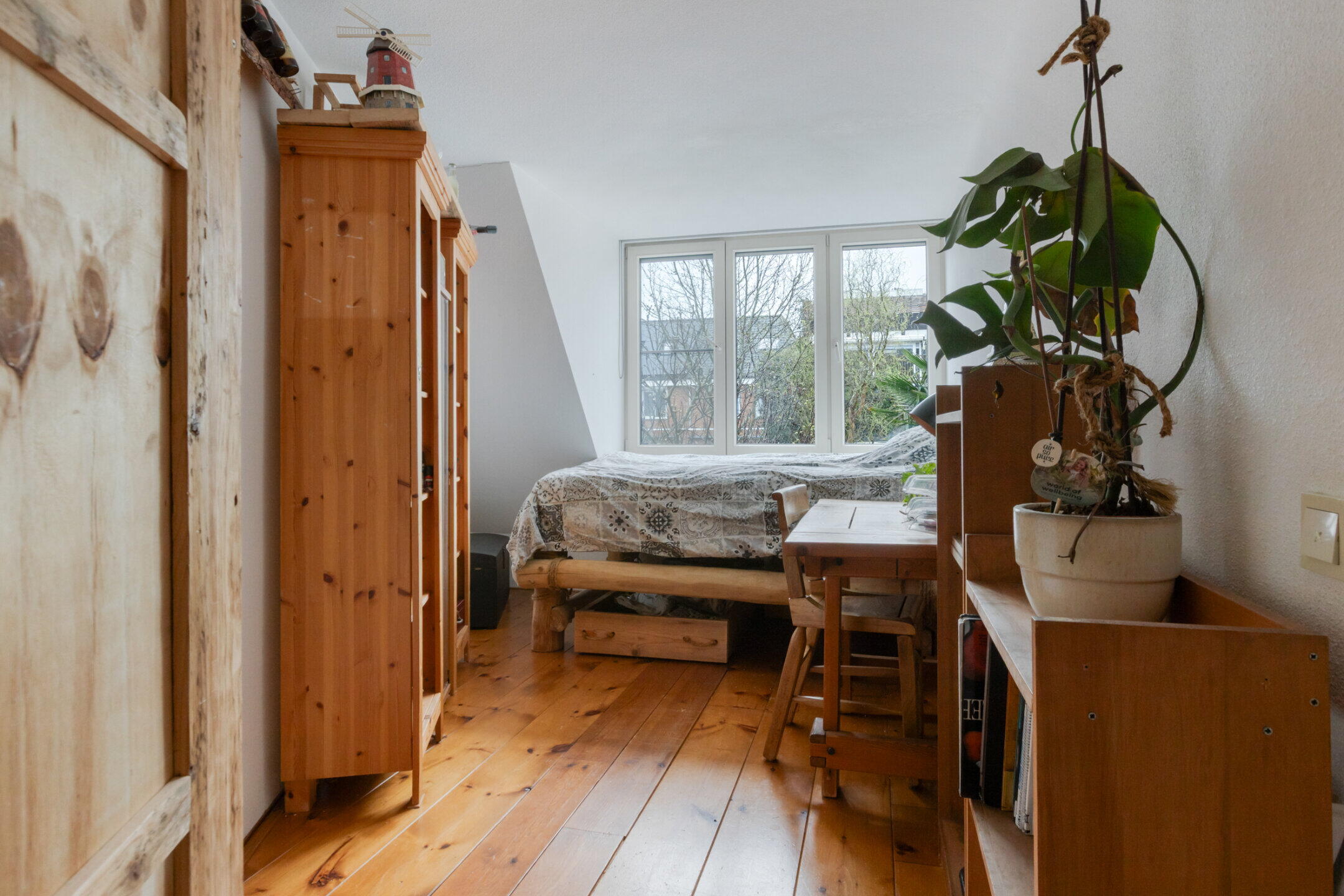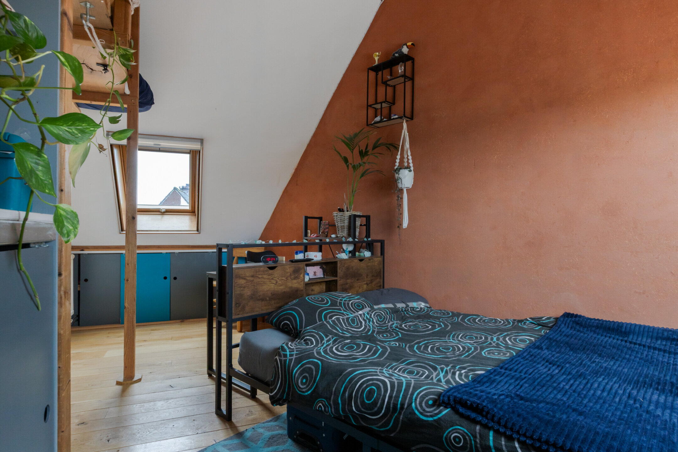 De verdieping beschikt over één grote slaapkamer met een nokhoogte van 3,11 m, voorzien van dakramen aan zowel de voor- als achterzijde. Aan de voorzijde is extra bergruimte aanwezig. De ruimte kan desgewenst worden opgedeeld in twee slaapkamers, eventueel met een extra dakkapel. Ook deze verdieping is afgewerkt met een massieve eikenhouten vloer, wat bijdraagt aan de warme en stijlvolle uitstraling van de woning.