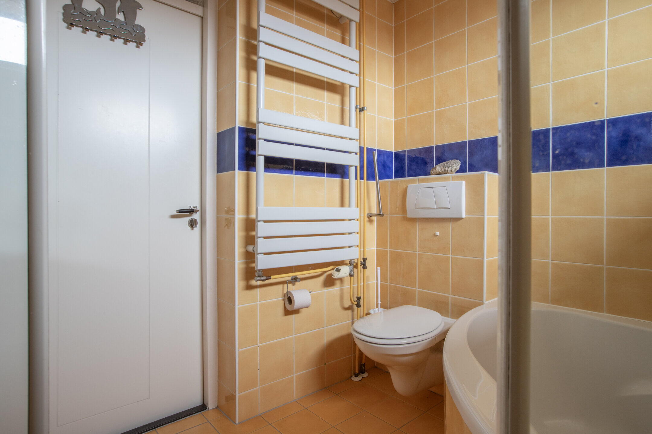 Aan de achterzijde zijn twee ruime slaapkamers, beide voorzien van een brede dakkapel met kunststof kozijnen over de volle breedte. De slaapkamer rechtsachter meet ca. 3,28 x 3,86 m, terwijl de kamer links ca. 3,37 x 5,28 m is. De gehele eerste verdieping is afgewerkt met een massieve grenenhouten vloer, wat zorgt voor een warme en stijlvolle uitstraling.